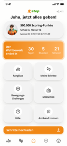 Badges, Ranglisten und das Maskottchen step Hero wurden direkt in die App integriert. Eine eigens entwickelte Scoring-Formel sorgt für Fairness zwischen unterschiedlich großen Klassen.